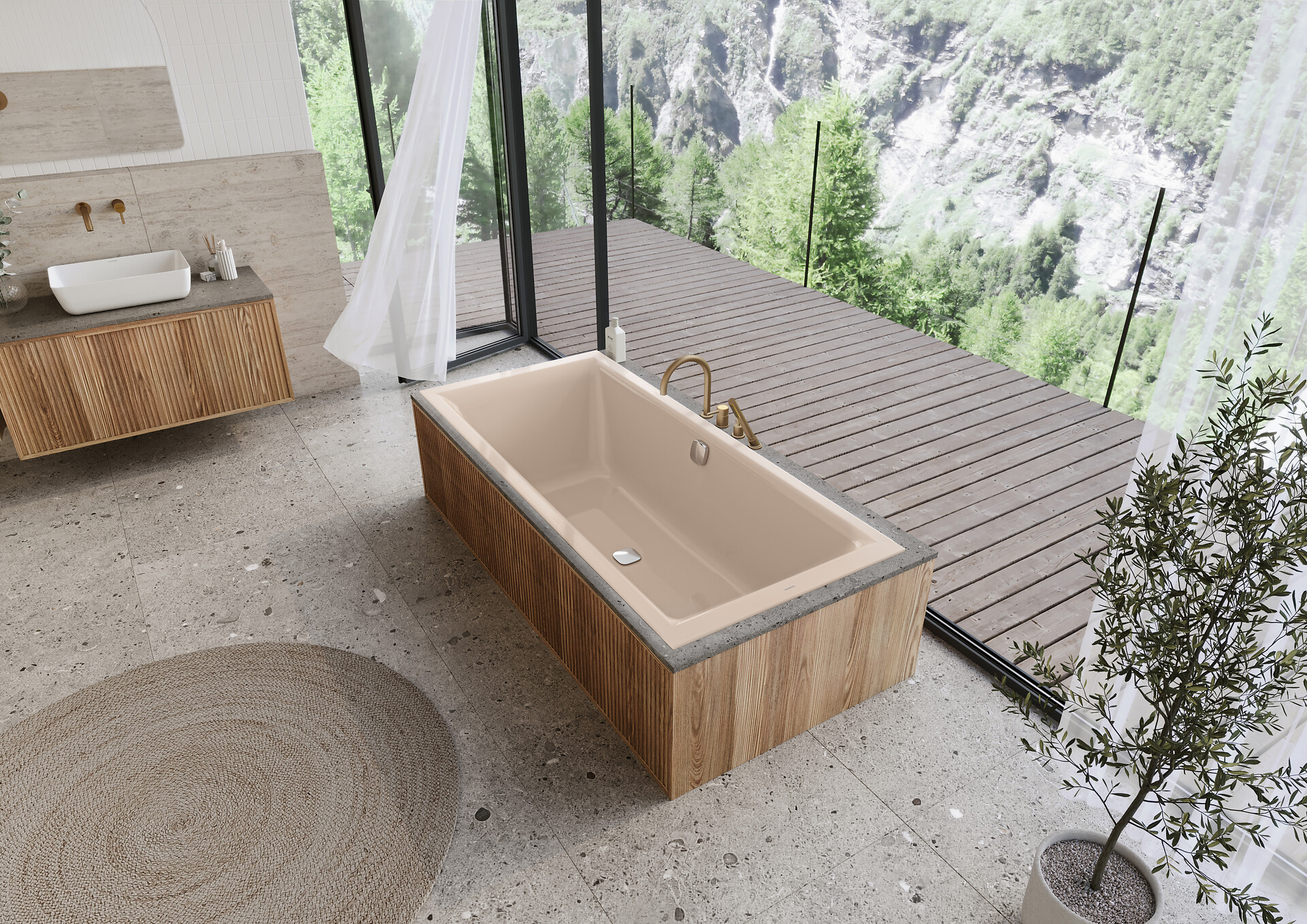 Nach einem Facelift demokratisiert die beliebte Kaldewei Puro Next Familie individuellen Luxus für eine breite Zielgruppe: von jungen Paaren und Familien mit Kindern bis hin zu Best Agern – hier die Puro Next Duo in der Farbe Bahamabeige. | Foto: KALDEWEI